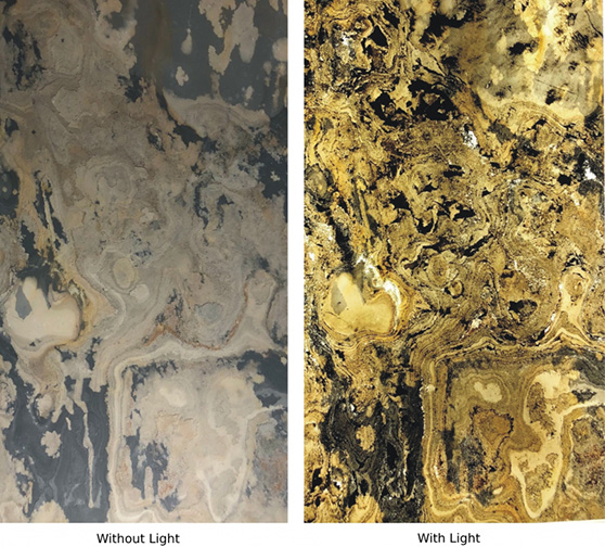 This sheet's stone originates from slatestone, boasting a satin surface with enhanced texture.