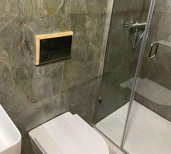 This sheet's stone originates from slatestone, boasting a satin surface with enhanced texture.