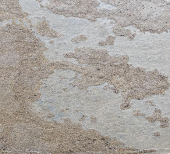 This sheet's stone originates from slatestone, boasting a satin surface with enhanced texture.
